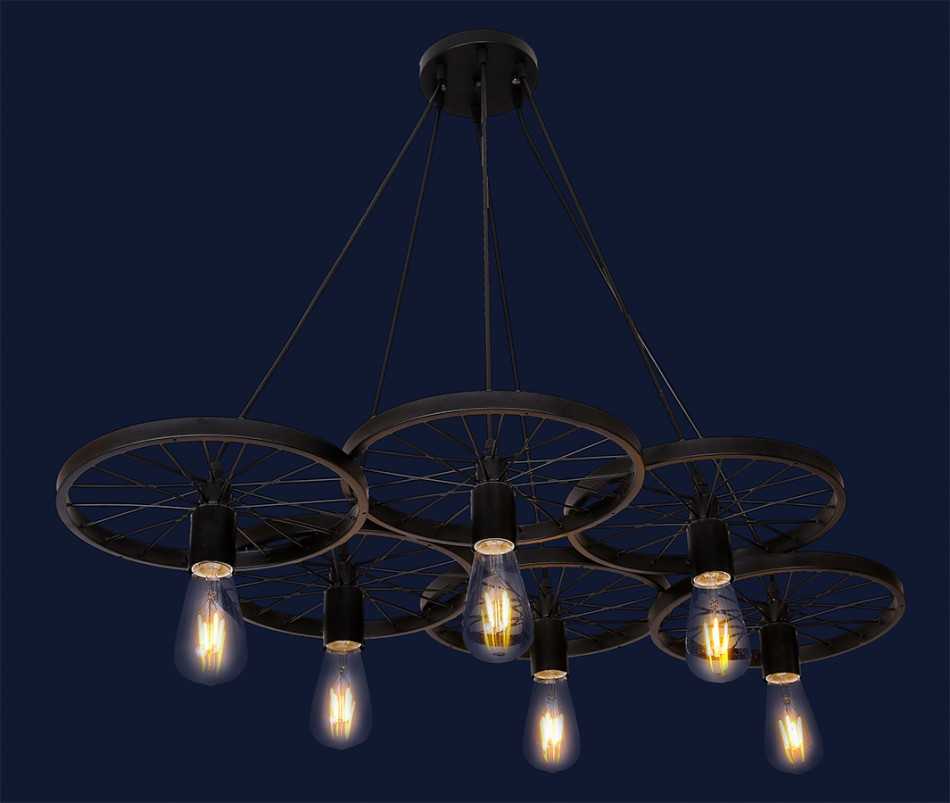 Для освещения помещений в стиле лофт используются самые разные конструкции приборов: торшеры, люстры, бра, настольные лампы, подвесные промышленные и даже уличные светильники. Большое количество представленных на рынке современных моделей изготавливается из самых различных материалов и деталей: стекло, металл, пластик, древесина, трубы, шестерни, цепи. Стоит заметить, что светильники в стиле лофт представлены в том же цветовом решении, что и используемые материалы.