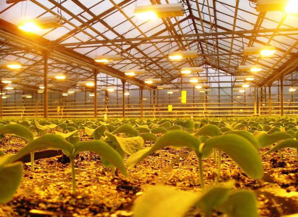 Для освещения парников с большой площадью используют подсветку от 60 до 500 Ват. Несложным подсчетом лампа днат должна иметь мощность 100 – 250 Вт. Для теплицы достаточно 3-4 штук. Такое освещение ускоряет рост побегов. Растение не вытягивается и прорастает равномерно.