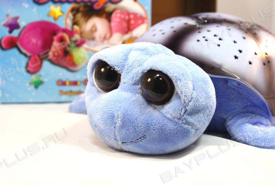 - 2 в 1. Прибор представляет собой ночник-проектор и мягкую игрушку. Таким образом, Черепашка будет полезна и днем, и ночью.