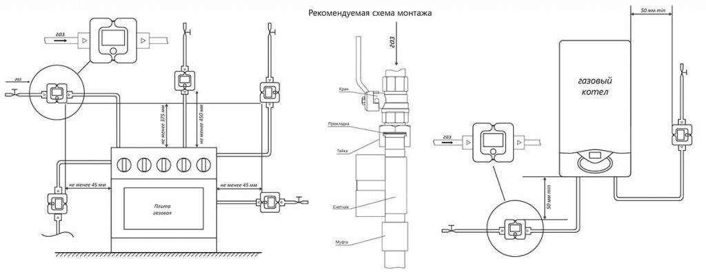 - Минимальное расстояние от счетчика до газовой техники – 1 метр.