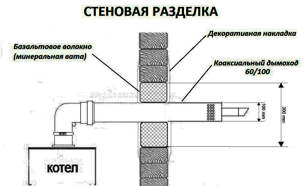 Проход коаксиального дымохода через стену, выполненную из негорючих материалов