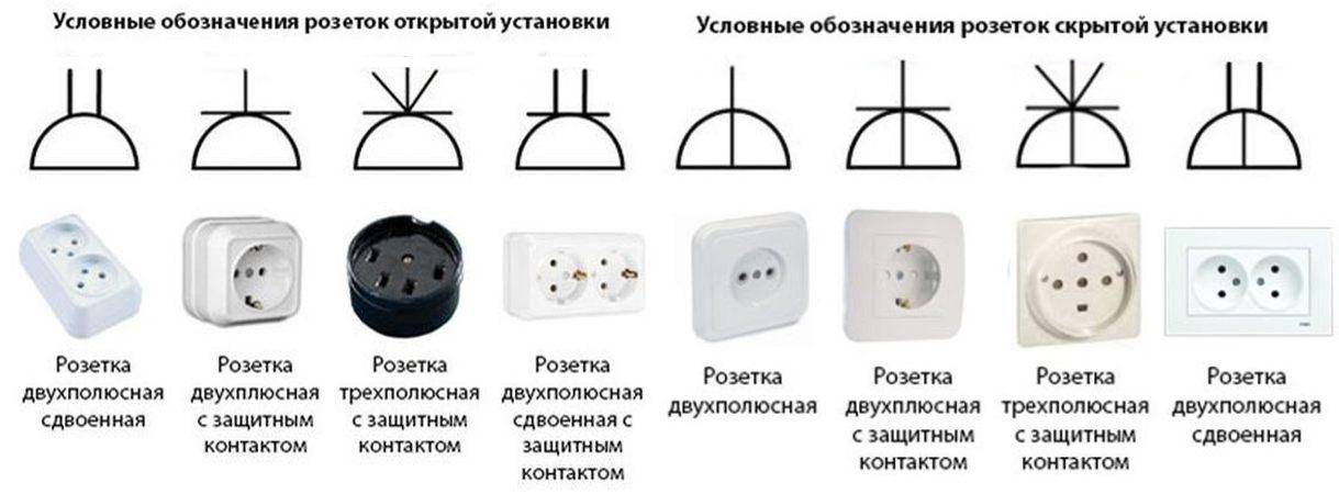 Наличие заземления обозначается на схемах плоской чертой, параллельной центру половины окружности, что отличает обозначения всех розеток открытых установок. Количество крючков означает количество клавиш Чтобы внести ясность в выбор подходящих вариантов, достаточно систематизировать их по нескольким принципам.