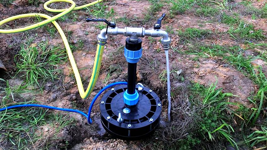 - абиссинский: вода, поступающая в трубу, введенную в водоносный слой буром, поднимается с помощью насоса.