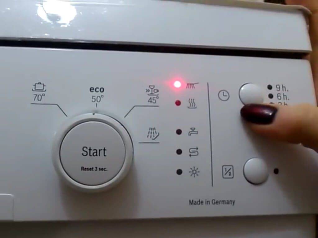 В этой модели предусмотрен таймер, который позволяет отложить выполнение выбранного цикла на срок до девяти часов. По окончании цикла мойки машина дает звуковой сигнал, который при желании можно отключить.