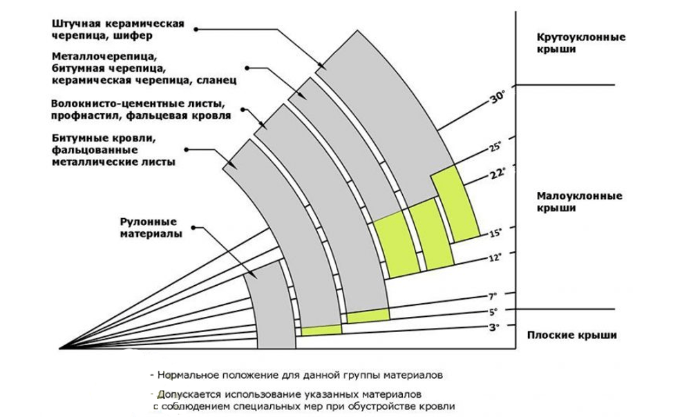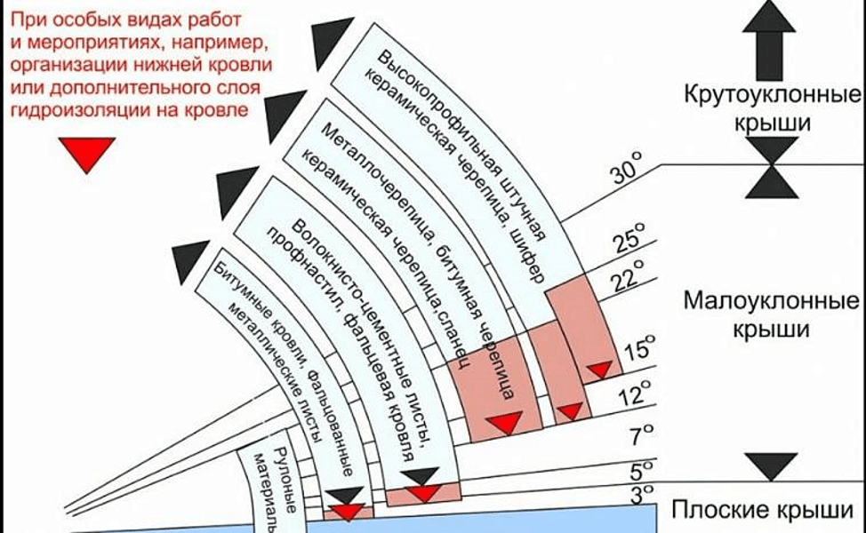 При выборе кровельного материала важно знать особенности его монтажа. Рекомендуемый угол наклона ската