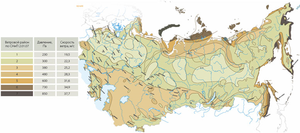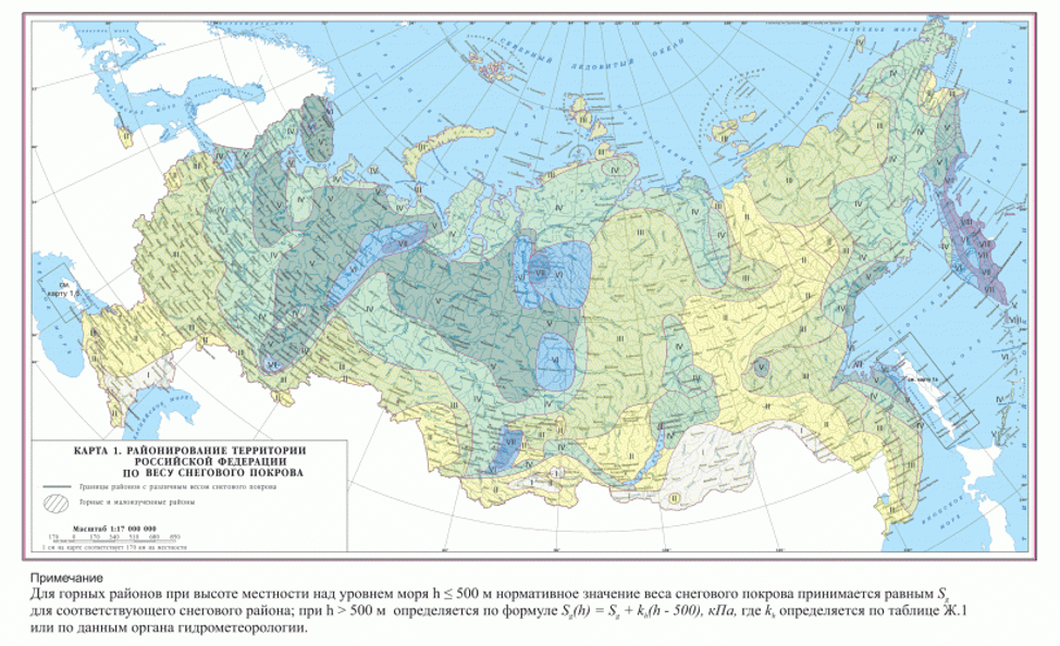 Упрощенно «прикинуть» снеговую нагрузку можно по карте РФ (районирование территории по весу снегового покрова и ветровые районы). Следует понимать: эти данные упрощены и не учитывают возможных нюансов, связанных с преобладающими ветрами, характером местности и другими факторами.