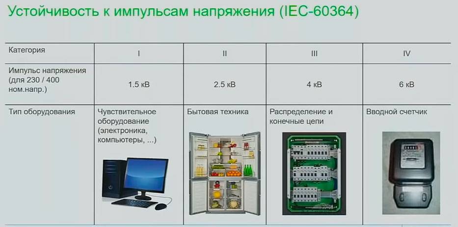Если взять все домашние электроприборы и разбить их на категории электрической стойкости к импульсам напряжения, то получится следующая табличка:
