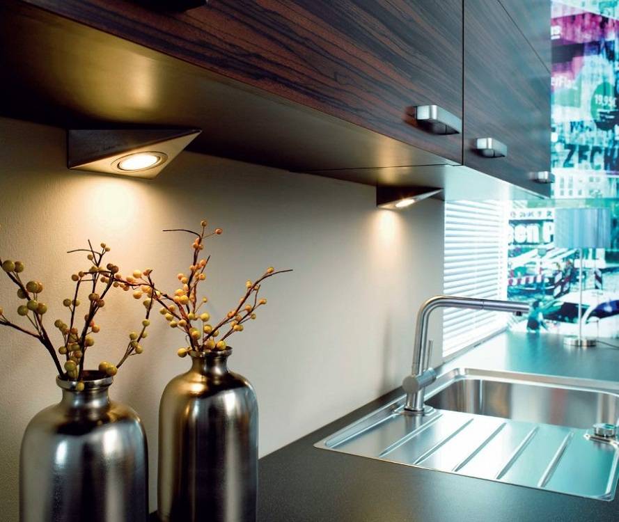 Разместите точечные светильники на гарнитуре, чтобы подсветить содержимое шкафов и ящиков.