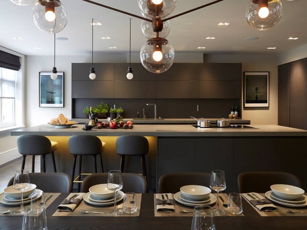 Разместите точечные светильники над обеденным столом, чтобы создать уютную атмосферу и привлекательный дизайн.