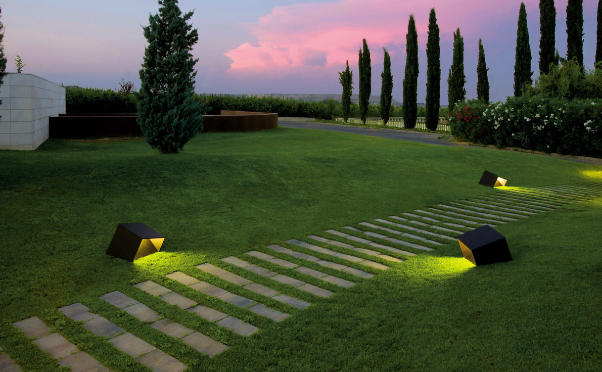 - для подсветки деревьев, искусственного водоёма, фасада дома и других объектов.