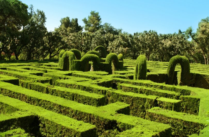 - Зеленый лабиринт. Это классика садового искусства, требующая большой площади и возвышенности, с которой можно наблюдать всю красоту извилистых дорог.