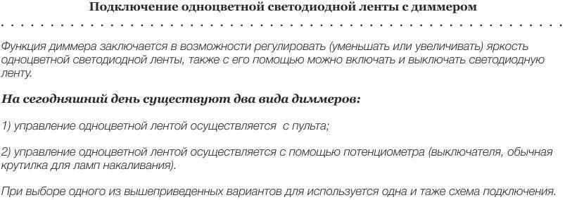 - А затем осуществляется подключение диммера, то есть выключателя и окончательная установка блока питания. Диммер и усилители потребуются в том случае, если вы планируете изменять яркость подсветки в период эксплуатации. Монтируются эти приспособления совместно с блоком питания.