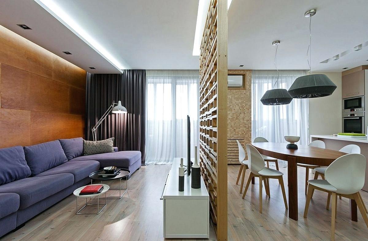 В малогабаритных квартирах зачастую совмещаются несколько комнат. Обычно это кухня и гостиная или столовая. Зонирование также широко распространено в однокомнатной квартире или студии, где изначально для кухни представлена маленькая площадь.