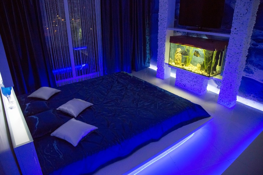 Чтобы сделать комнату более просторной, невесомой, используют светодиоды для подсветки пола. Варианты источников света – лента, гибкий неон, трубки со светодиодами дюралайт. Реже используют лед-панели (точечно, в отдельных островках гостиных и кухонь). Можно выбрать стандартное решение или цветную подсветку пола по периметру комнаты.