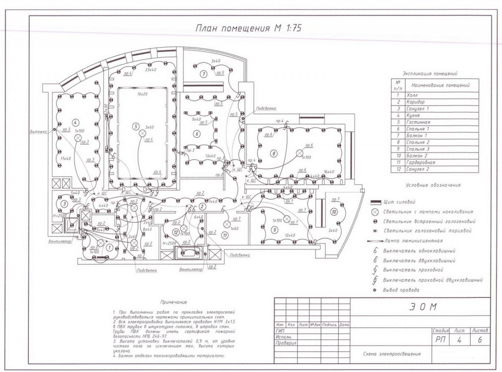 Группы освещения квартиры (групповые цепи)
