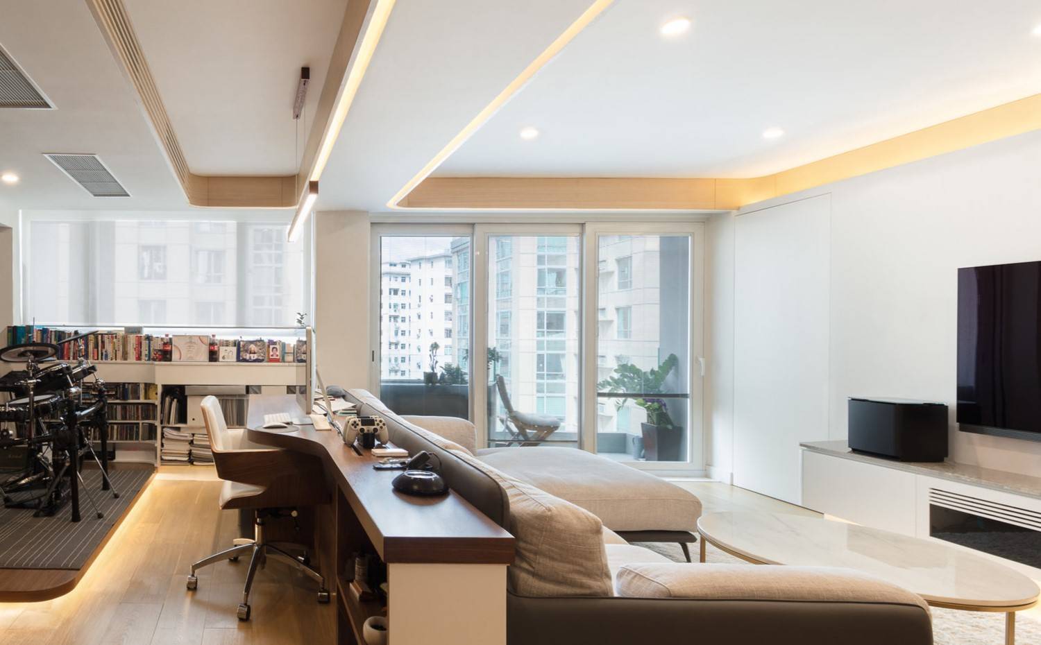 Придать комнате изюминку помогут светодиодные ленты и точечные светильники.