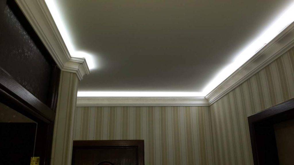 Карниз с подсветкой. Лучшим решением в хрущевке станет монтаж по периметру коридора карниза. За ним прячется светодиодная лента.
