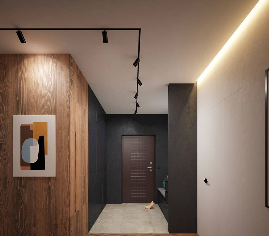 Когда речь идет о проектировании длинной прихожей, первое, что следует учитывать, – это ее размер. Как правило, в большинстве домов их строят длинными и неширокими. С помощью соответствующего освещения мастера постараются скрыть недостатки крошечного коридора.