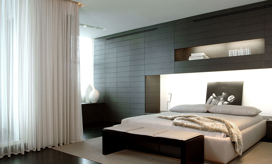 Такой направленный свет позволит создать несколько функциональных зон, связанных единой концепцией, но разделяемых простым щелчком выключателя. Такое решение станет находкой для пар, в которых партнеры привыкли отправляться в постель в разное время и не хотят жертвовать своим досугом.