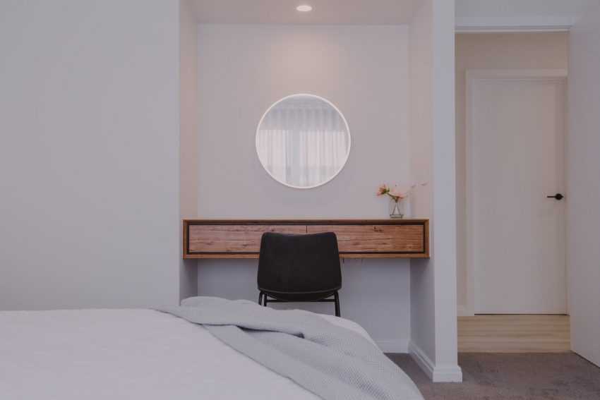 Количество предметов мебели в спальне должно быть минимальным. Это сохраняет больше пространства, делает помещение наполненным светом и воздухом.