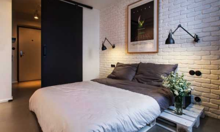 Если в помещении низкие потолки, то направленный вверх свет от прикроватных бра визуально сделает их выше.