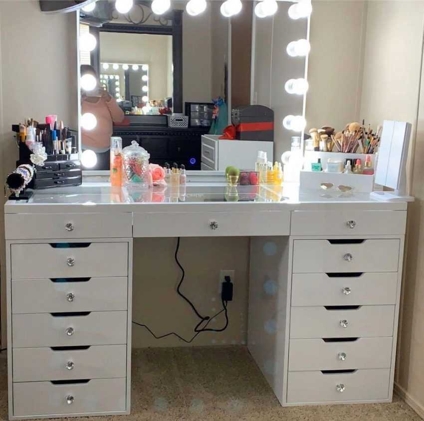 - Для женщин также важна зона нанесения макияжа. Это может быть трюмо, трельяж и т.д. Свет должен падать ровно, мягко, без теней.