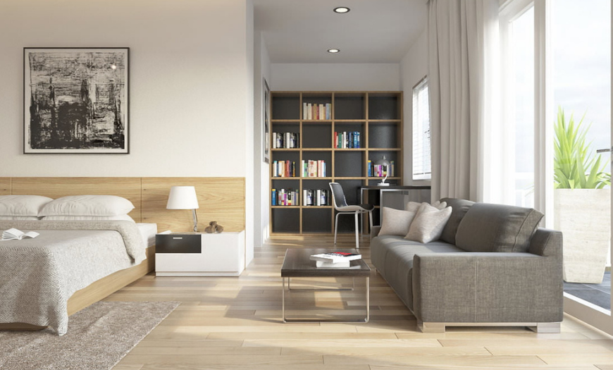 Совмещенная спальня с гостиной