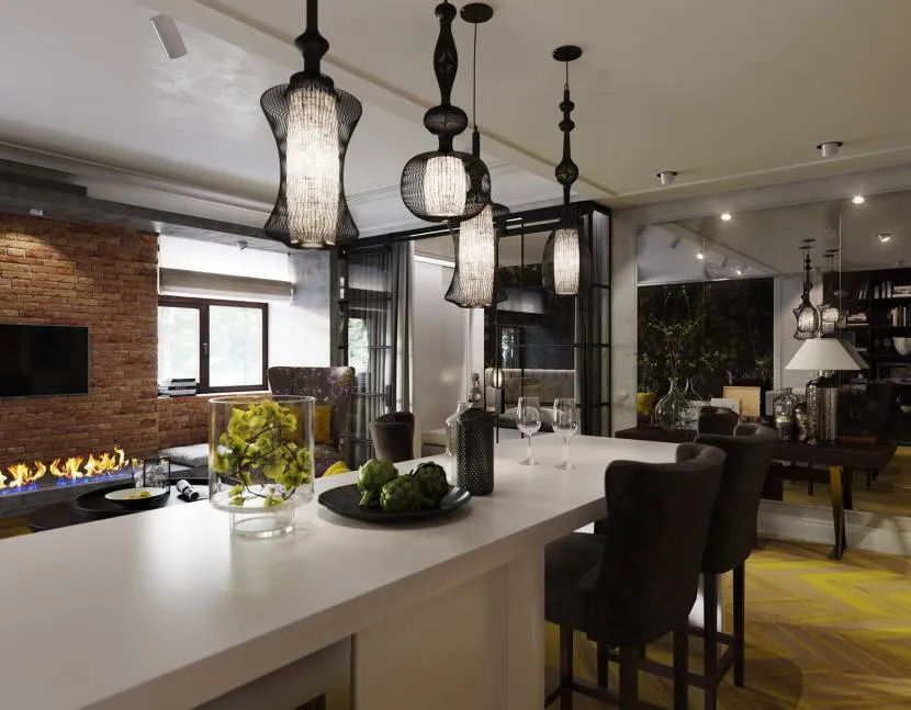 Пространство стараются сделать максимально открытым, для чего устраивают перепланировку и объединяют, например, гостиную и кухню.