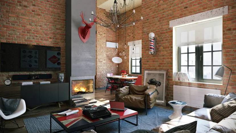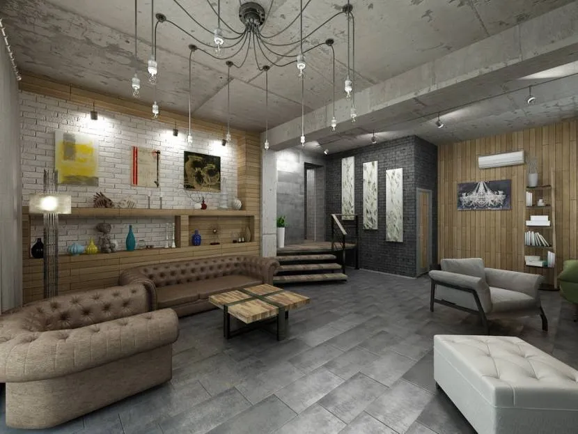 Подразумевает максимальную любовь к промышленной эстетике, явно демонстрируя визуальные следы рабочего прошлого. В таком интерьере преобладают металлические и бетонные поверхности, приглушённые монохромные цвета, а также фабрично-заводская атрибутика в виде балок, массивных труб, вентиляционных шахт и фрагментов проводки.