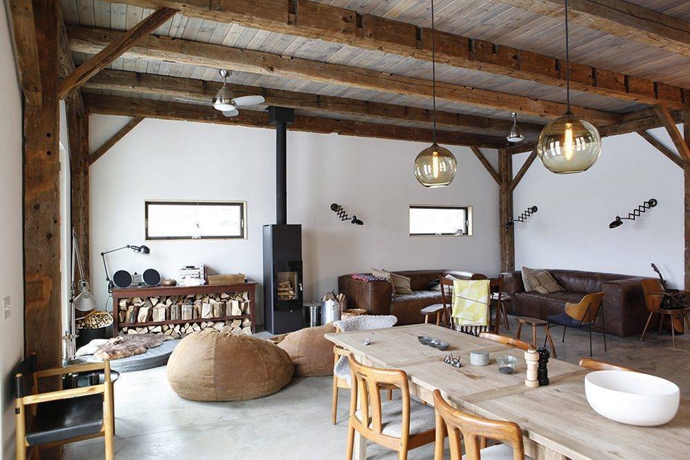 - Натуральные материалы в оформлении, мебели и декоре. Основой служит дерево, металл, стекло. Характерная черта – открытые коммуникации (трубы, проводка, вентканалы) по стенам.