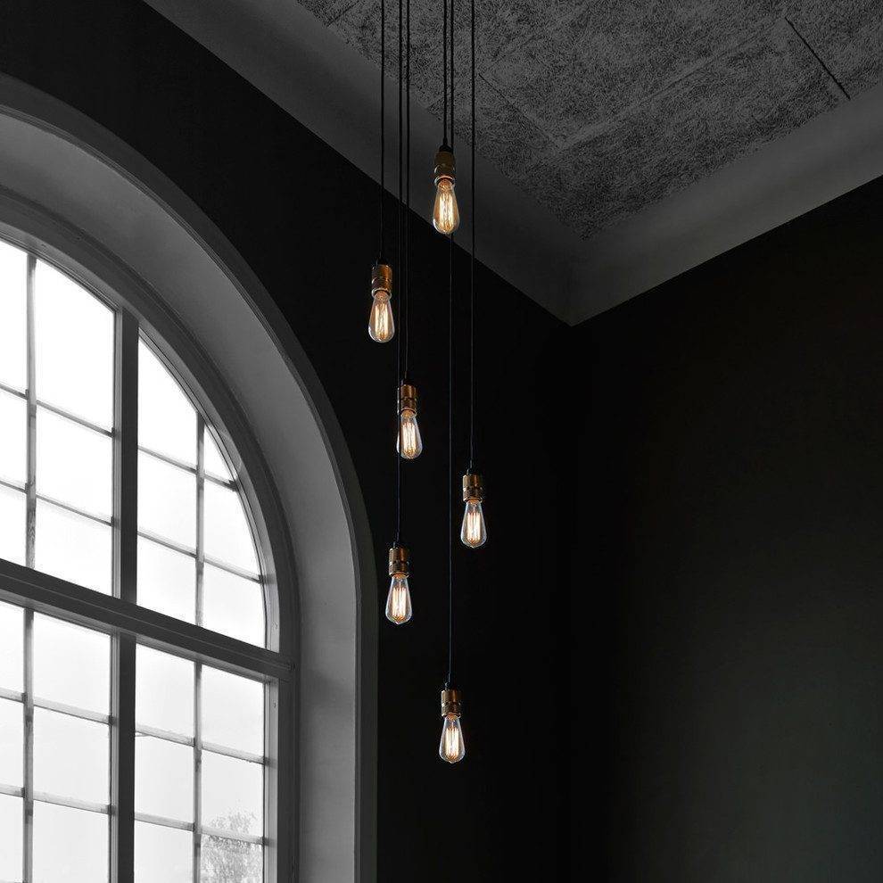 Пауки. Просто и со вкусом. На центральный крюк крепится несколько проводов различной длины. На каждой «лапе» паука имеется лампочка. И, конечно же, никаких плафонов.