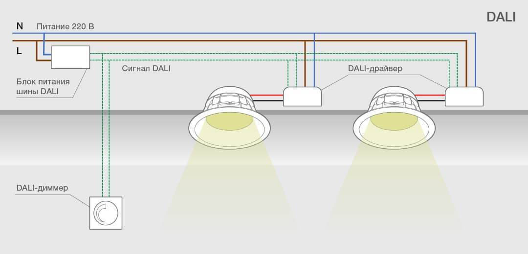 Существует несколько схем подключения для димминирования освещения. Каждая будет описана с принципом подключения и возможного назначения.