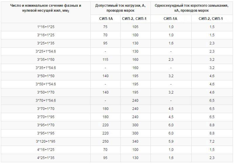 У СИП-1А изоляция более дешевая и выполнена из термопластичного полиэтилена, а в СИП-1, СИП-2 из сшитого полиэтилена с улучшенными качествами термостойкости. Соответственно возрастают и допустимые токи нагрузки.