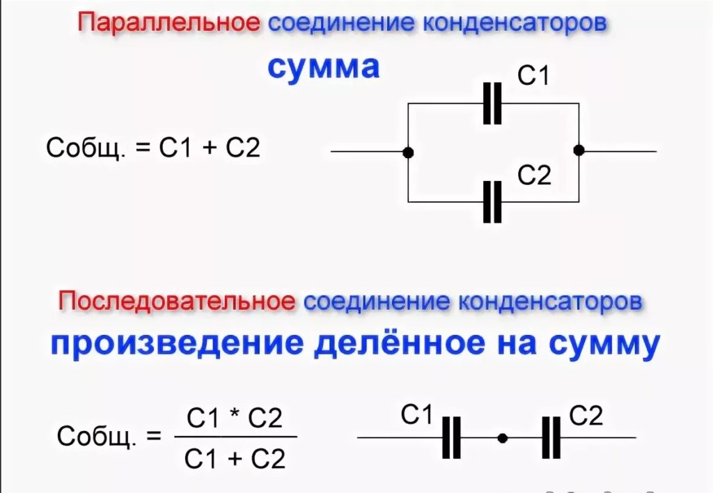 Запомнить сами формулы несложно: в обоих случаях результат равен сумме составляющих. Разница в том, что для первого случая составляющие и результат формулы — это сами емкости. А для второго случая — это обратные величины.