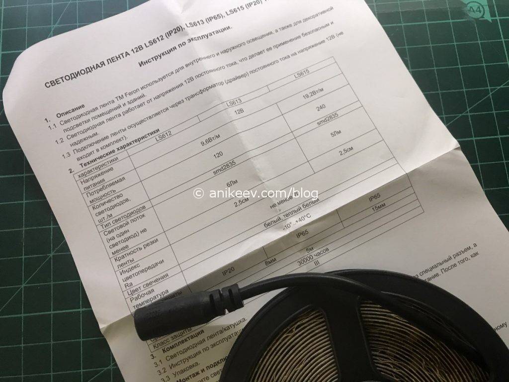Конечно же, лента из магазина будет иметь все сертификаты и параметры, заботливо указанные на инструкции. У ленты даже будет хвост для подключения к источнику питания, он пригодится.