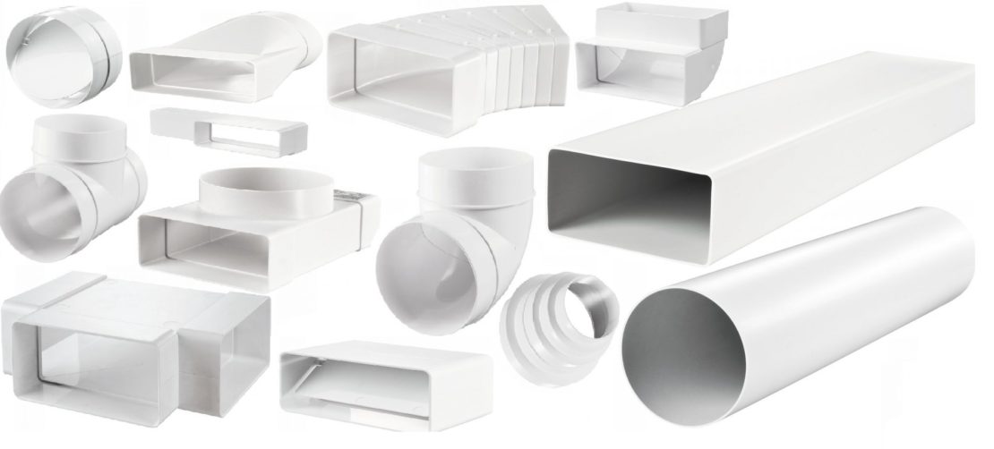 | ПВХ | Наиболее востребованный вид изделий для обустройства бытовой вентиляции, прочны и герметичны, устойчивы к термическим нагрузкам до 1600°С (по нормам не более 1200°С, т.к. при максимальной температуре нагрева выделяют хлор). | Неустойчив к воздействию слишком низких температур. На морозе трескаются и деформируются. |