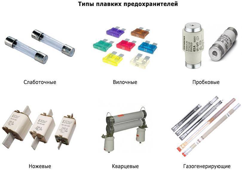 Плавкие предохранители делятся на следующие типы: