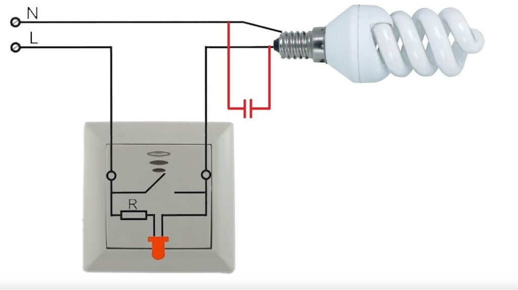 Схема подключения светодиодной лампы через комнатный выключатель с индикатором
