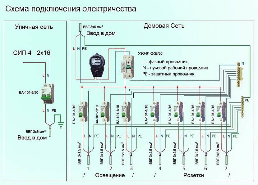 С наибольшим сечение будет вводной кабель, идущий от столба к электрическому щиту. Если последний находится снаружи, толщина кабеля должна составлять не менее 10-16 мм².