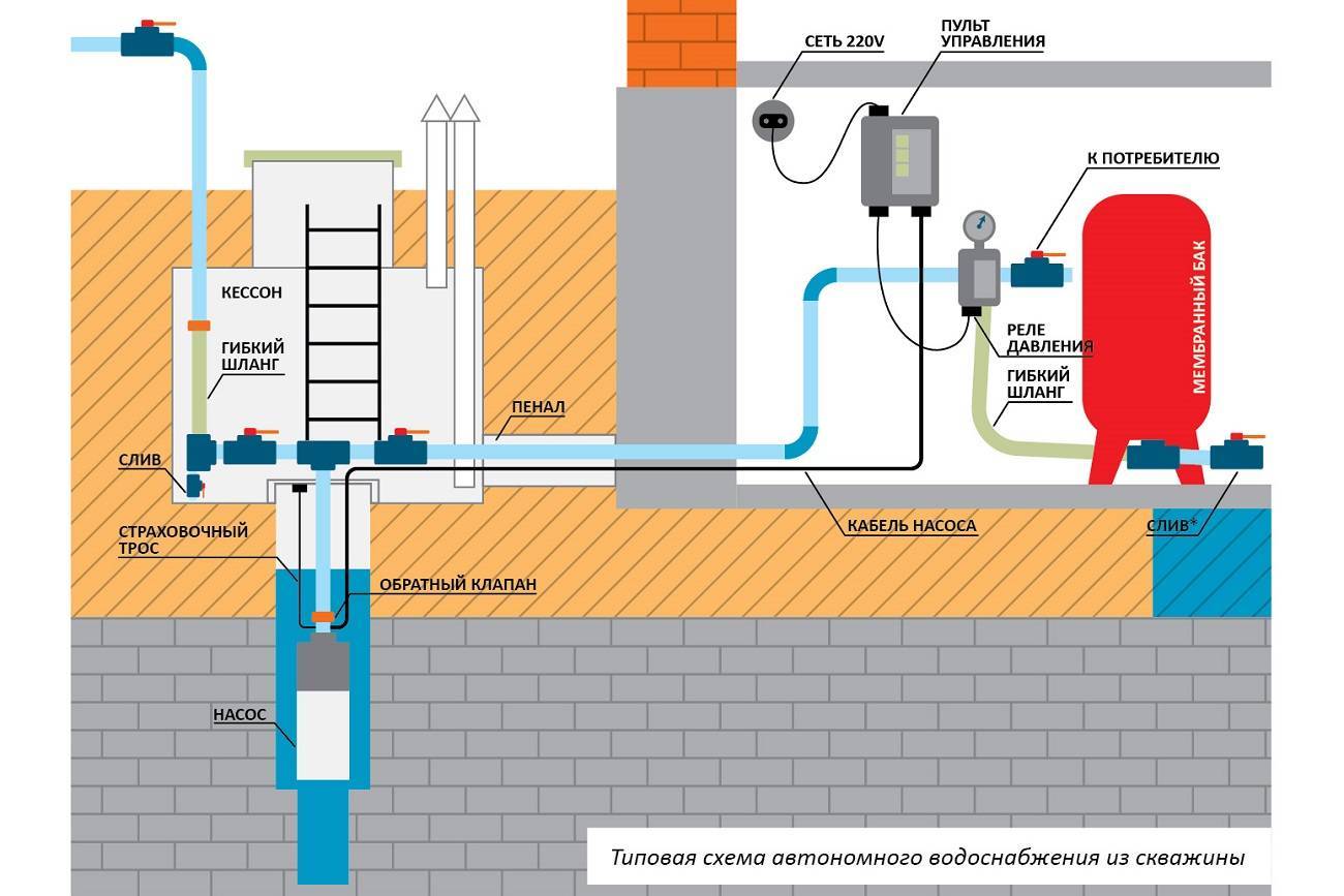 Для автономного водоснабжения частного дома из скважины используют несколько вариантов с применением различных устройств. Так как вряд ли кто-то захочет включать и отключать насос, подающий воду в дом, вручную, в каждый из схем обязательно должен присутствовать прибор, проводящий данные операции в автоматическом режиме.