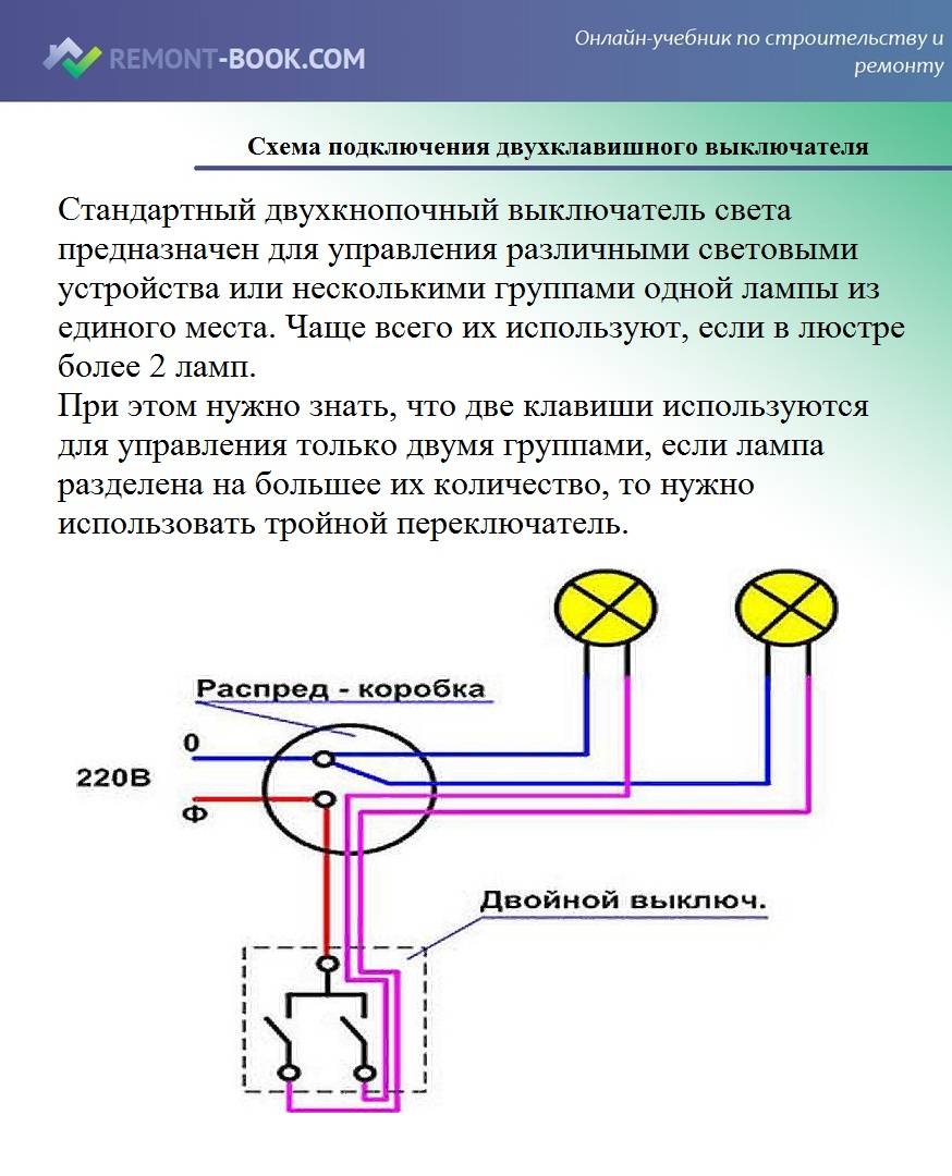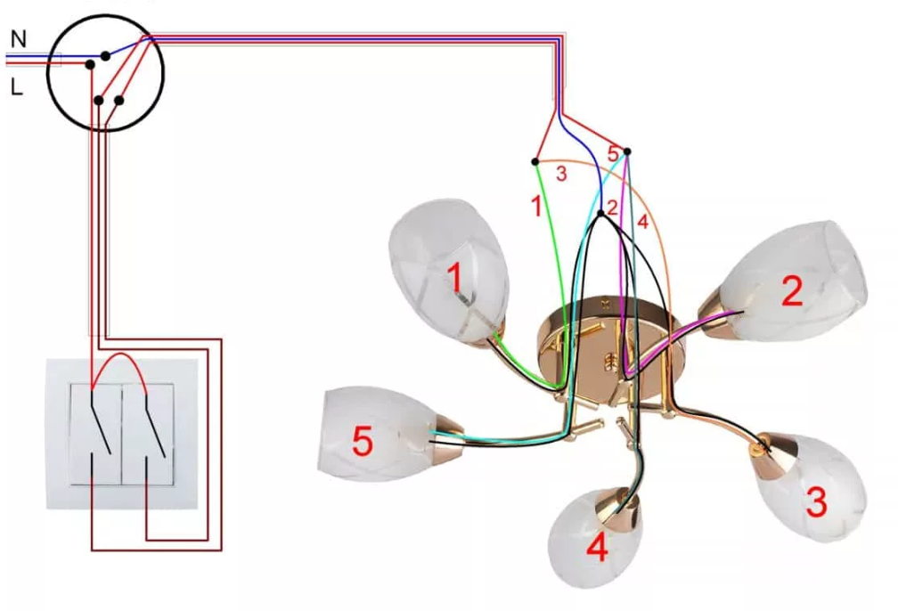 Как подключить люстру на 3 лампочки к двойному выключателю