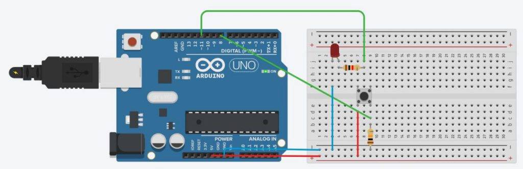 Обратите внимание, что светодиод загорается, когда мы подаём низкий уровень (LOW) на соответствующий вывод Arduino