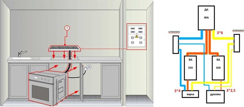 Подключение варочной панели и духового шкафа к электросети выполняется с учетом техники безопасности