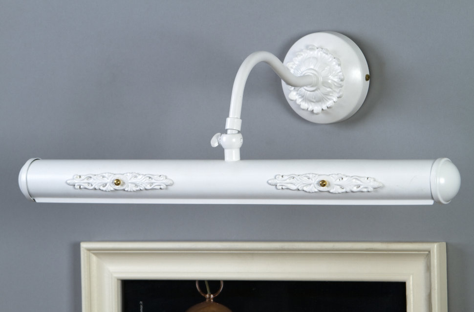 Особые светильники освещают полотна под определенным углом, предоставляют возможность придать световому лучу необходимое направление. В каталогах производителей подобные источники света сфотографированы не над настоящими картинами, а над различными репродукциями
