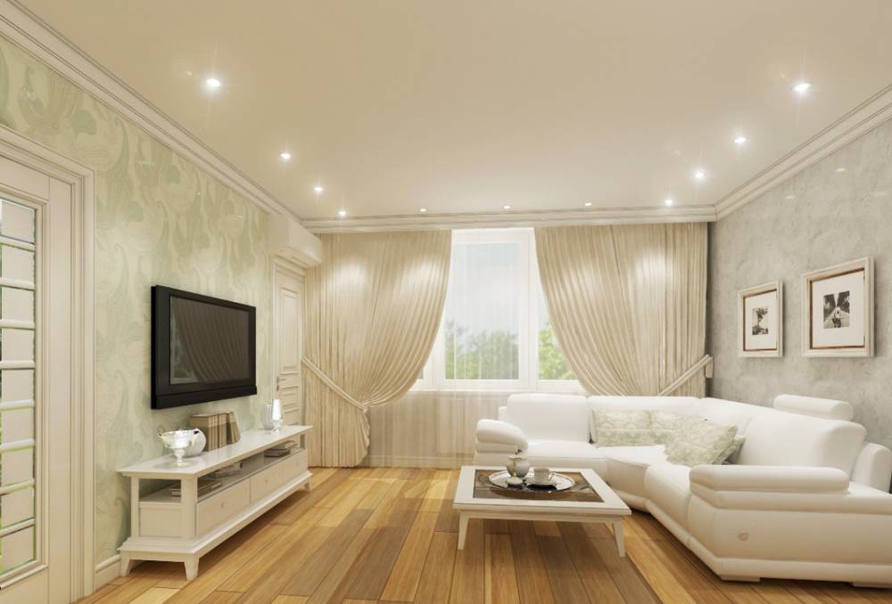 - Декоративное. Не имеет практической функции, предполагает установку точечных светильников. Их располагают так, чтобы визуально расширить пространство и создать оживленную обстановку.