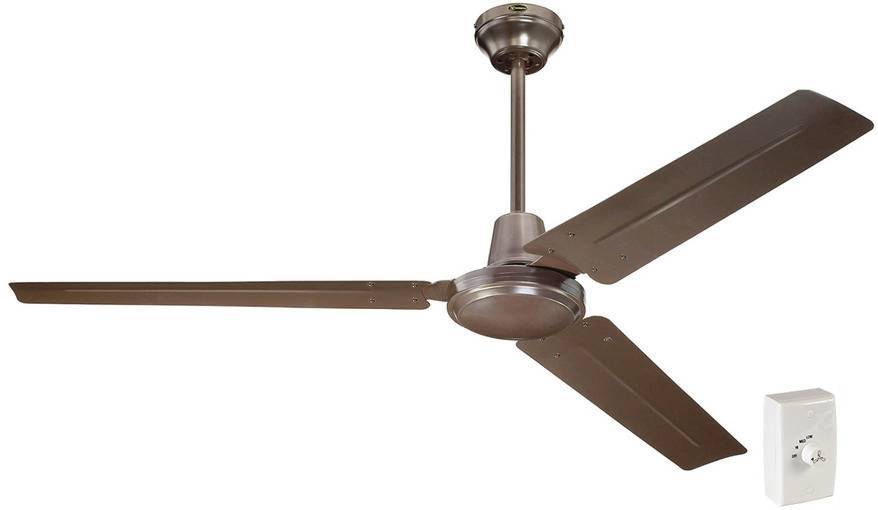 Необычный коричневый девайс продается за 9800 рублей в любом интернет магазине. Его диаметр — 142 см, при этом мощность равна 70 Вт. Стальные лопасти в коричневом стиле подходят практически под любой интерьер. Их три штуки при этом обрабатываемый объем воздуха составляет 13500 метров кубических в час.