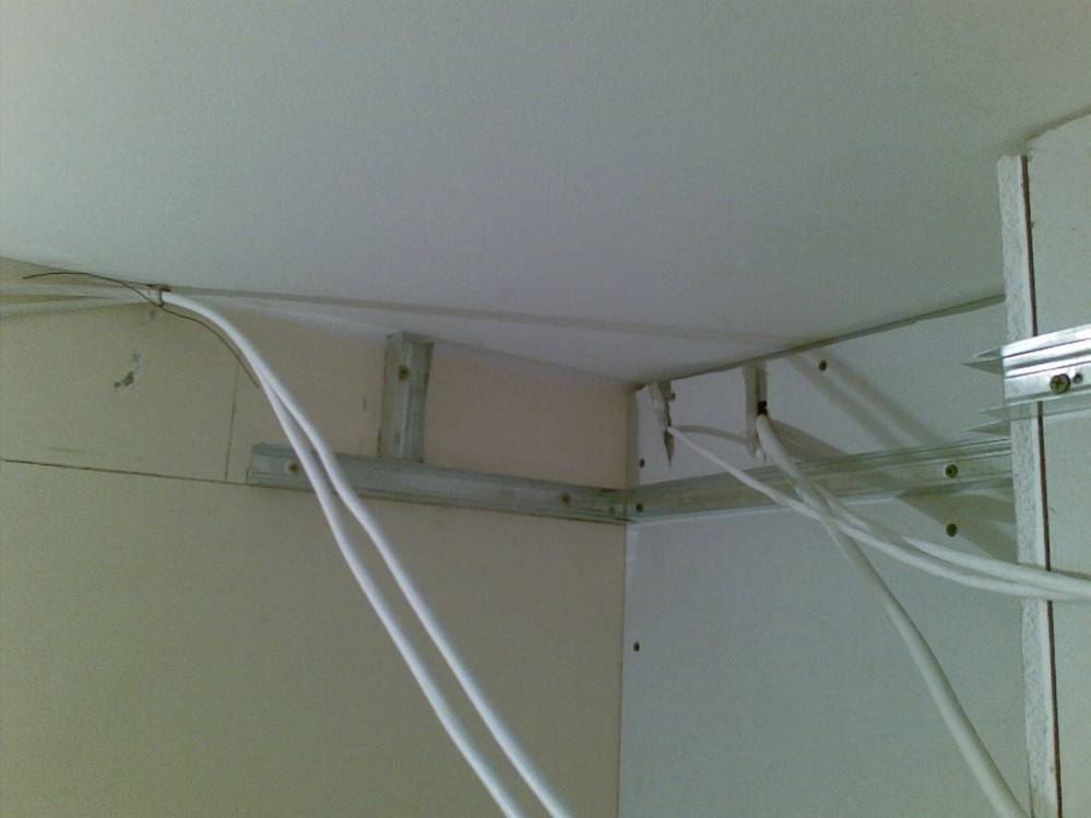 - С крайней точки карниза выводится силовая кабельная линия, к которой будет подключаться осветительный прибор. При необходимости устройства нескольких точек подключения, провода прокидываются в теле короба с отводами и готовыми клеммами.