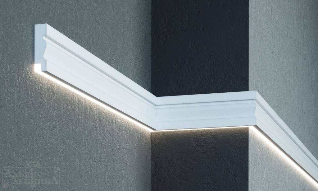 Потолочный плинтус под подсветку устанавливается следующим образом: