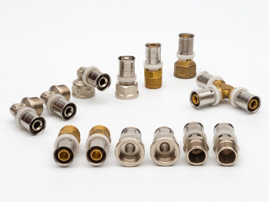 Сращивание двух труб из металлопластика происходит посредством фитингов, которые также имеют различный диаметр, отличаются способом монтажа, назначением и конфигурацией. Материал изготовления – нержавеющая сталь и латунь