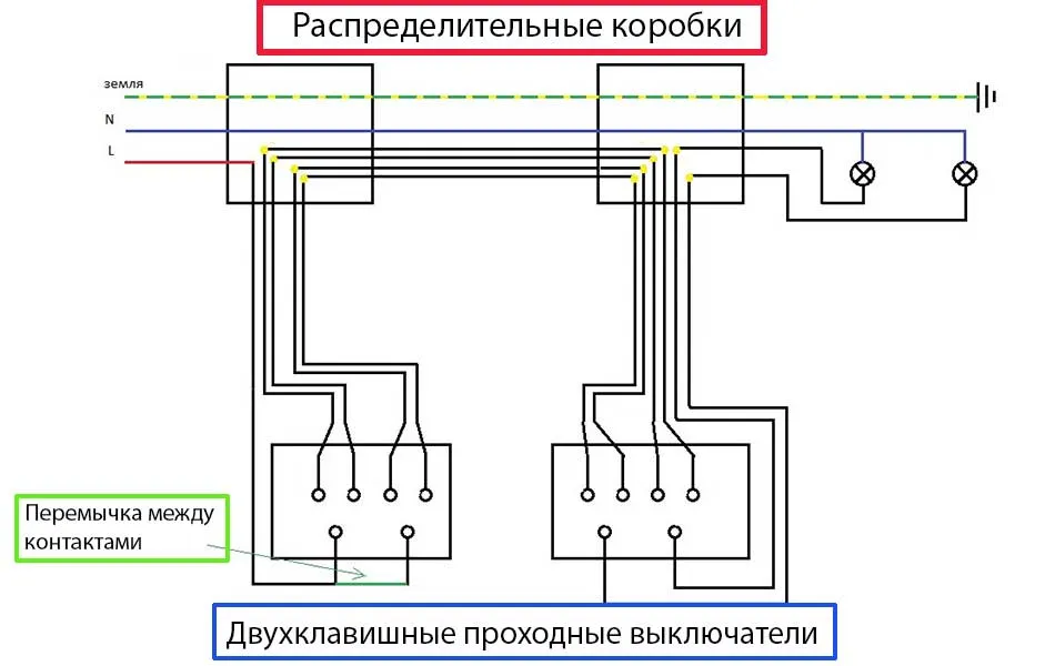 Схема подключения проходного выключателя